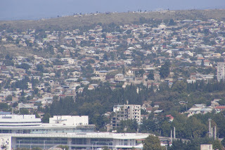 It is Sunday and another beautiful fall day here. Yesterday was a ‘ruff’ day for me. I woke up at 6:00 and had a classic case of food poisoning. After tossing my cookies, I went back to bed only to return to the porcelain goddess twice more. The third time there was nothing left in my system and I thought my stomach would come up through my esophagus. I slept off and on all day, drinking lots of water. Sunday I managed to have a light breakfast then promptly fell asleep for a morning nap. When I got up we decided to walk to Rustaveli and get a feel for the area where we are staying. We found the main branch of Prospero’s Books and were pleased to find a wonderful bookstore with books in English. We were told that the owner is an American married to a Georgian woman. They also have a great coffee shop with espresso drinks and sandwiches. They have a small branch in our hotel lobby. We ran into the consular from the embassy with his family. We had our first language lesson on Friday at the Embassy and today prided ourselves on being able to recognize the letters we had learned. There is hope for these old dogs! After eating at Prospero’s we came back to the hotel and I promptly fell asleep for my second nap. Yesterday took a lot out of me, so to speak!